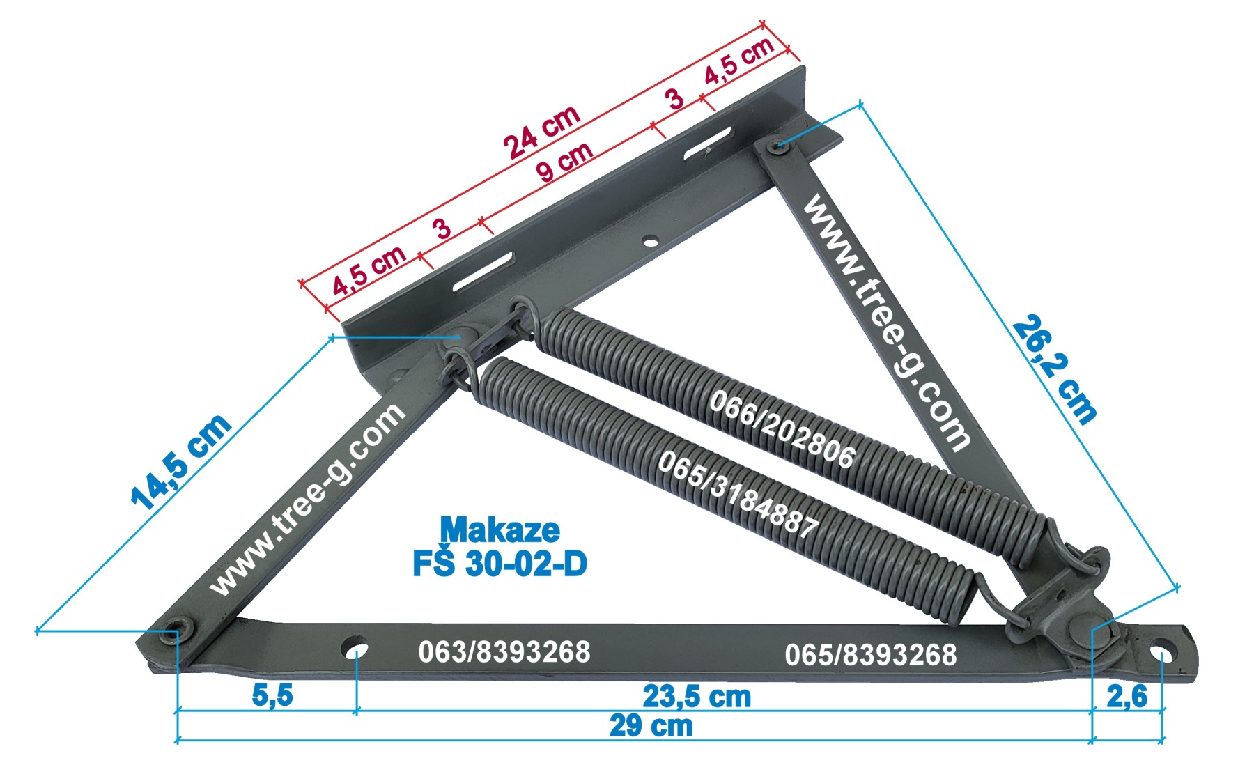 Makaze za podizanje podloge dušeka i dušeka kod singl kreveta sa propisanim težinama koje podižu