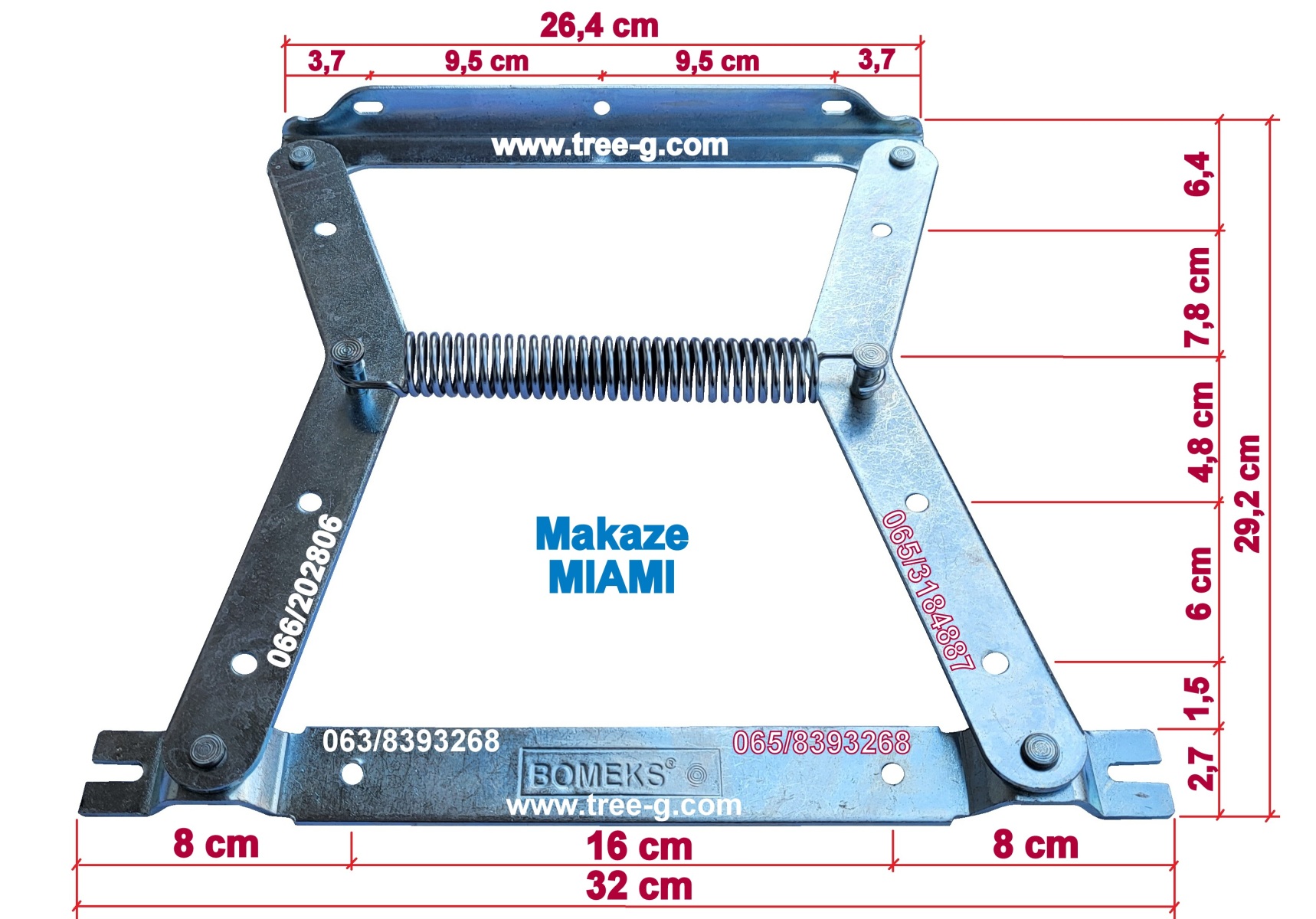 Makaze MIAMI se najčešće ugrađuju u ležaj GROF i služe za elegantno pomeranje sedećeg dela iz zadnjeg u prednji položaj kako bi oslobodio prostor za obaranje naslona na njegovo mesto i tako se garnitura za sedenje pretvori u udoban i širok ležaj za dve osobe