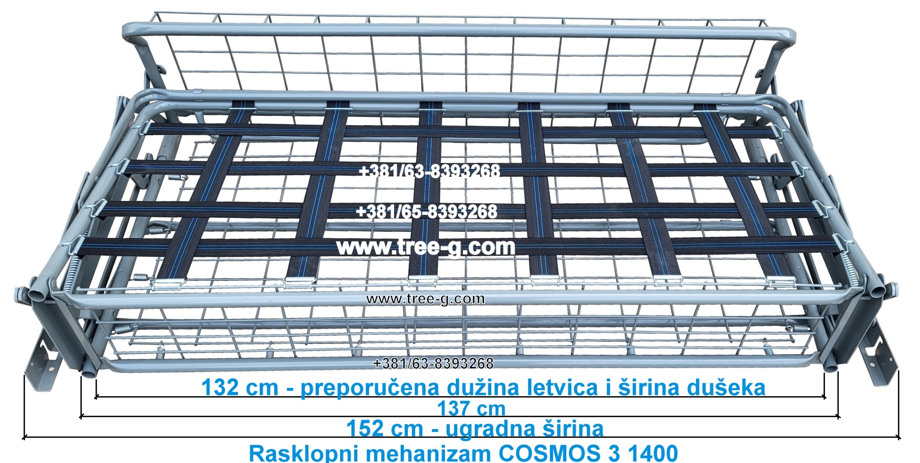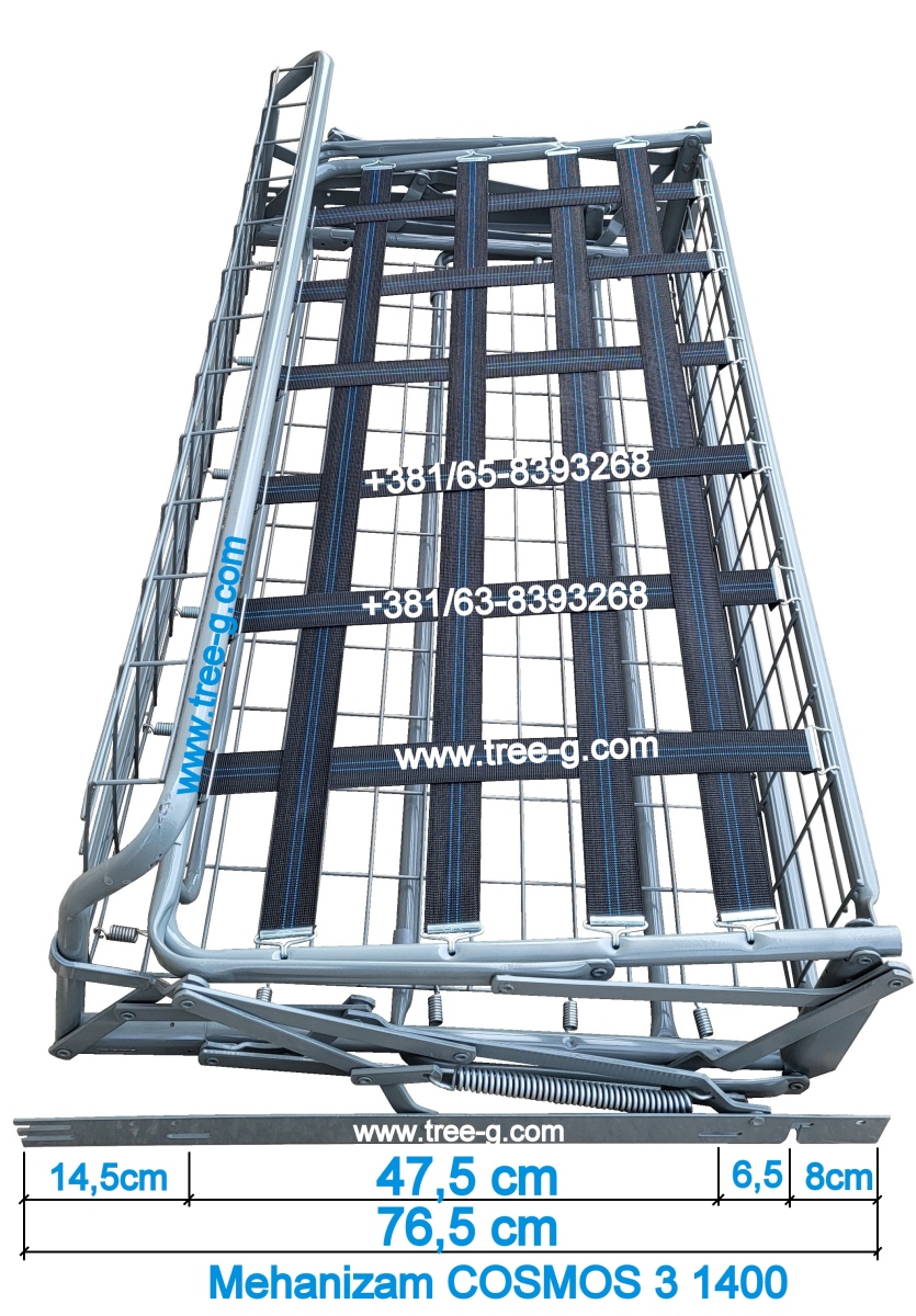 Preporučena dimenzija dušeka za ovaj mehanizam je 132 do max 135cm širine x max 185cm dužine x 10cm debljine. Unutrašnjost dušeka je sunđer specifične težine do 25kg/m3.