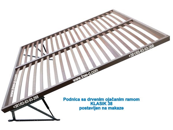 Ram KLASIK 38, za dušek 80; 90; 100 i 120 x 200 cm, ima 21 (dvadeset jednu) letvicu, a za dušek 140; 160; 180 i 200 x 200 cm imaju 42 (četrdeset dve) letvice čija je širina 38 mm.