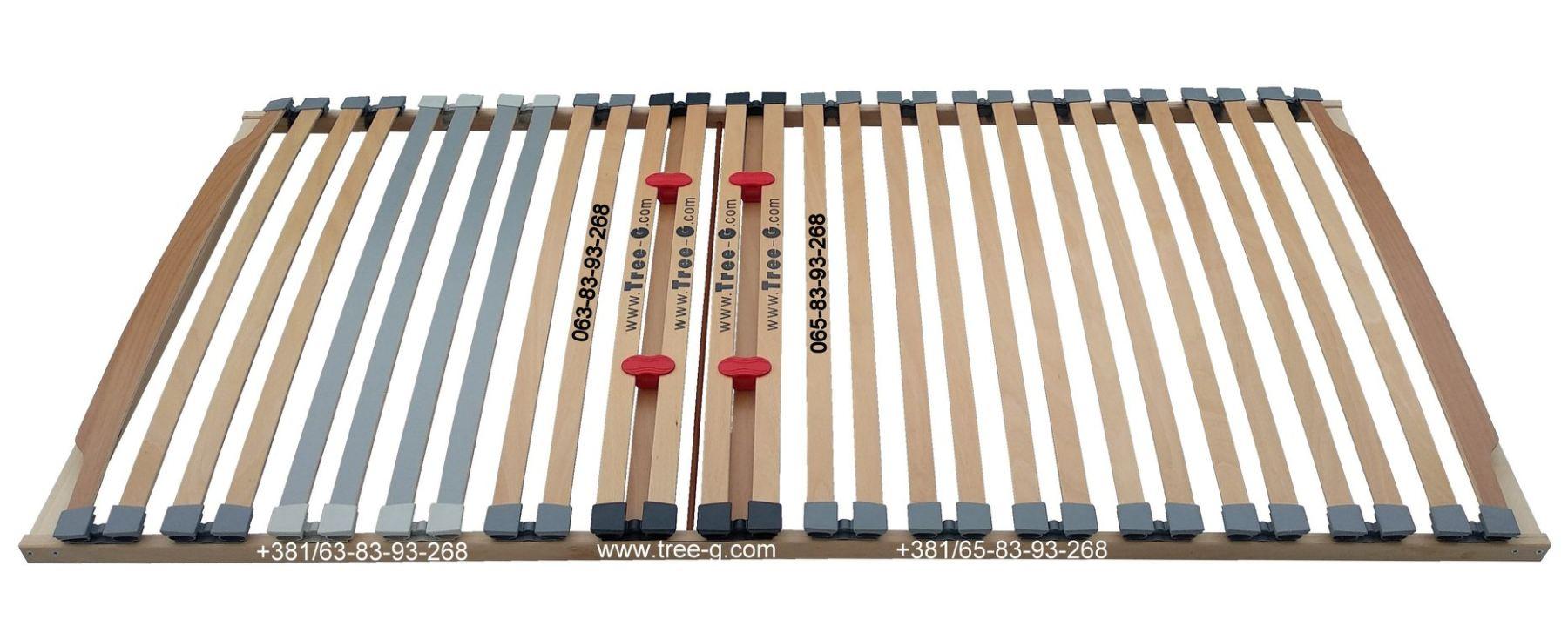Letvice za latoflex podnice su od lamelirane bukve dim. 38 x 8 mm. U gornjoj zoni podloge nalazi se 28 lameliranih letvica, a u srdeišnjem delu dodate su 2 letvice sa gumenim klizačima koja služe za željenu regulaciju tvrdoće u lumbalnom delu tela. Pored elastičnih letvica i držači imaju ulogu elastičnosti.
