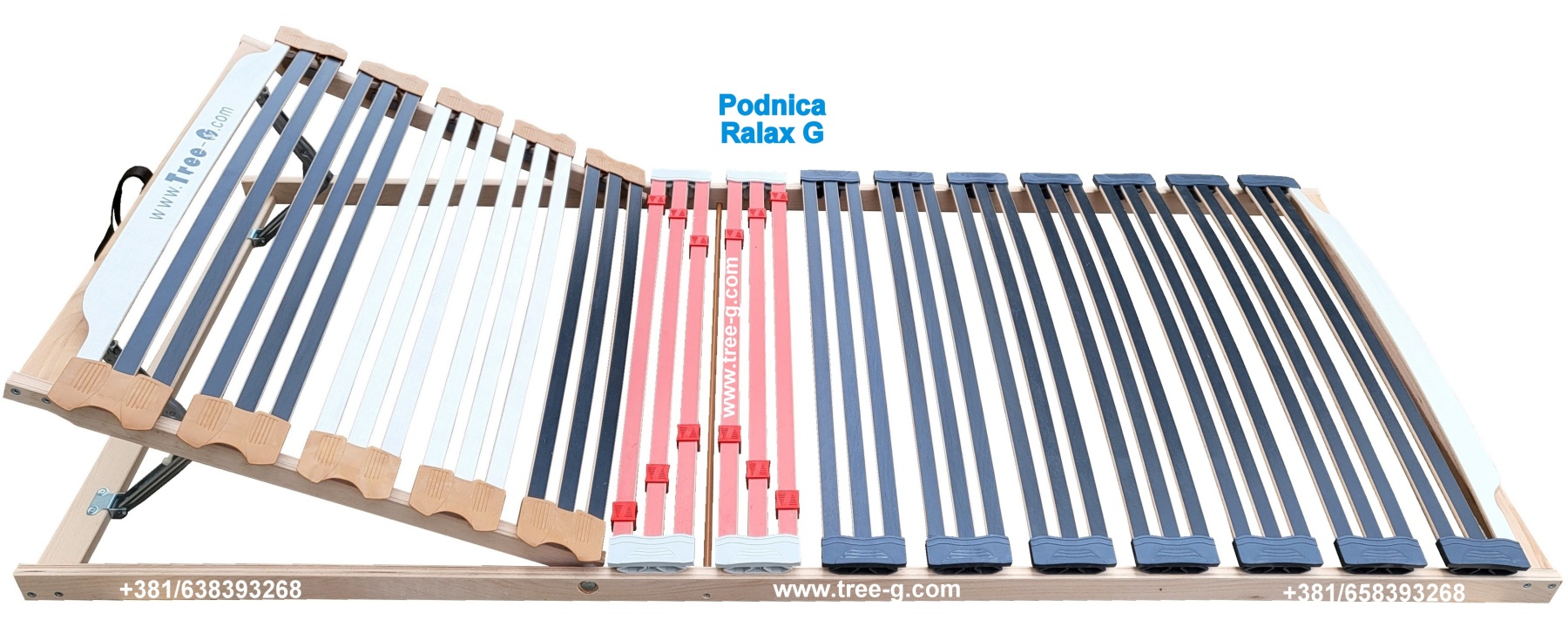 Podloga RELAX – RELAKS ima 39 do 45 latofleks letvica u gornjoj zoni plus 6 letvica u donjoj zoni koje služe za regulaciju tvrdoće u lumbalnom delu.